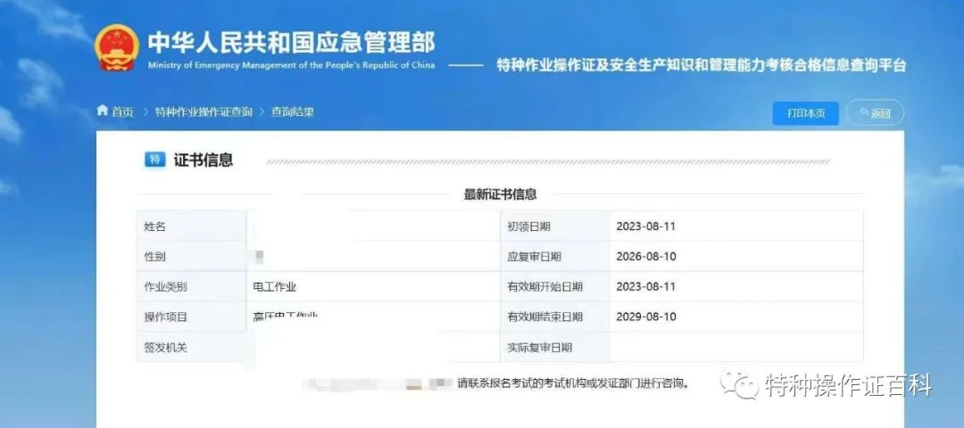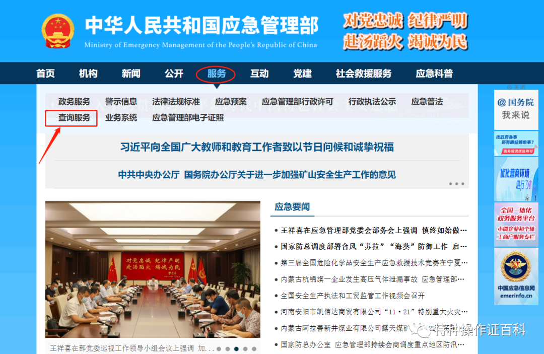 應急管理部政府網(wǎng)站為全國特種作業(yè)人員操作證信息查詢系統(tǒng),