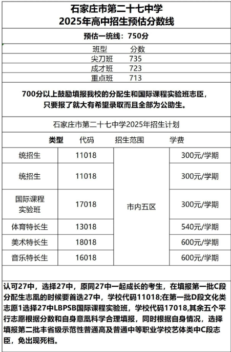 石家莊42中、24中、27中、15中、1中系、2中系、正中、精英、等近30所高中分數(shù)線及收費標準!